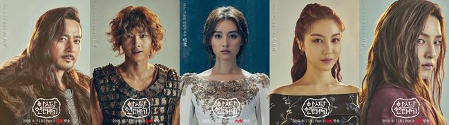 tvN ‘아스달 연대기’ 장동건-송중기-김지원-김옥빈이 Part3 ‘아스, 그 모든 전설의 서곡’에서 더욱 저력을 폭발시킬 ‘5인 캐릭터 포스터’를 전격 공개했다.