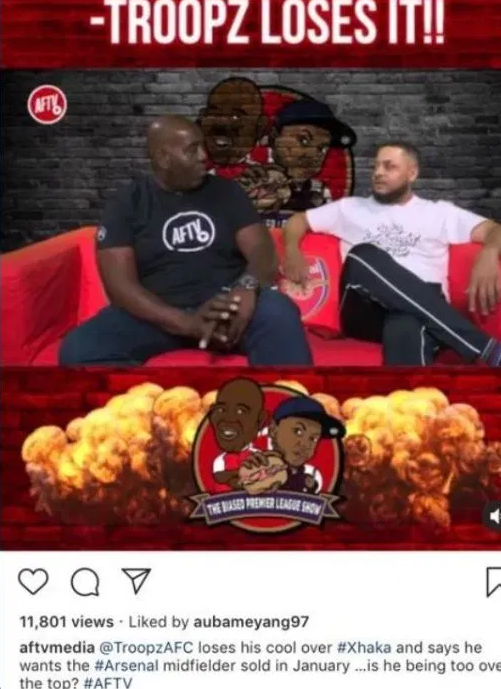 화를 참다 못해 그만... 피에르 오바메양이 아스날 동료 그리니트 자카를 비난하는 SNS에 좋아요를 눌렀다.