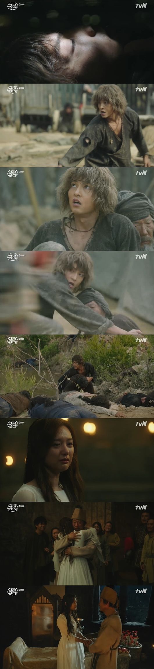 '아스달 연대기' 송중기가 노예굴에서 탈출했고, 대제관으로 승격한 김지원은 와한의 사람들과 재회, 송중기를 구해내겠다고 다짐했다.
