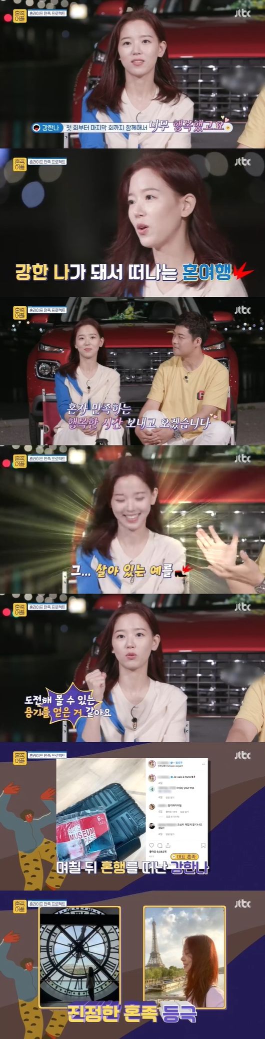 전현무는 "혼행(혼자 여행) 좋아하느냐?"고 질문했고, 강한나는 "내일 모레 혼행을 떠난다. 프랑스 파리로 혼자서 일주일 여행 계획을 세웠는데, 진짜 '혼족어플'을 찍으면서 모험할 수 있는 모험심이 생겼다. 8월 초에 여행을 계획했는데, 정말 이 프로그램이 도움됐다. 새로운 날 발견했다"고 설명했다. 전현무는 "진짜 '강한 나'가 됐다. 우리 프로그램이 사람 하나를 바꿔놨다"고 했다.