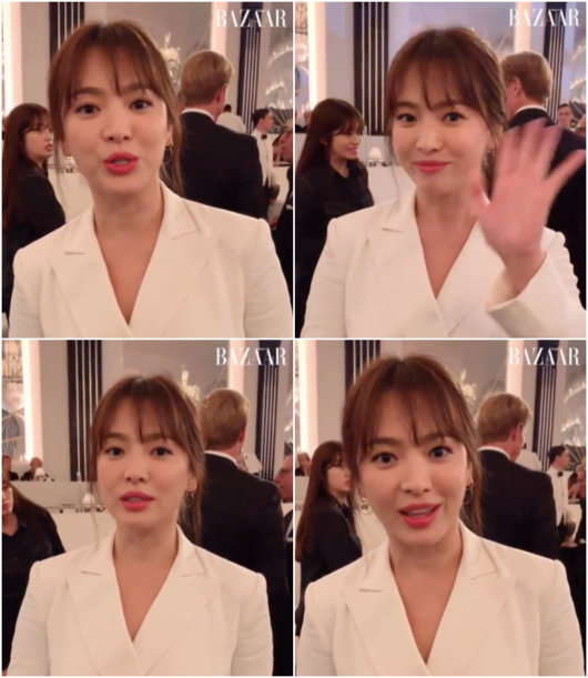 송혜교는 흰색 슈트 패션을 완벽하게 소화하며 특유의 단아하면서도 고급스러운 분위기를 담아냈다. 우아한 매력이 더해진 가운데 변함 없는 ‘여신 미모’를 뽐내고 있었다. 송혜교의 변함 없는 미모가 돋보였다.