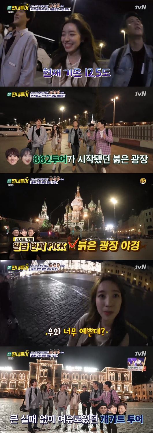 박명수는 붉은 광장 야경에 대해 "인형의 집에 와있는 기분이었다. 너무 예뻤다"고 말했다. 한혜진은 "야경을 보지 않았다면 후회했을 것 같다"고 공감했다.
