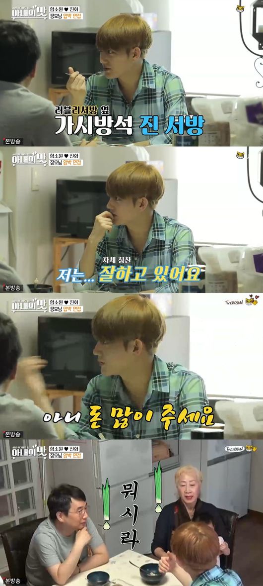 첫째 사위는 진화에게 "우리 처제 어디가 마음에 들어서 결혼했냐"고 물었고, 진화는 "똑똑한 사람 좋아해, 마음이 좋다"고 했다. 첫째 사위는 "우리 아내도 성격이 비슷해, 처음엔 다정했는데 요즘 무섭다"꼬 했고, 진화는 "형부도 고생많다"고 해 폭소하게 했다.