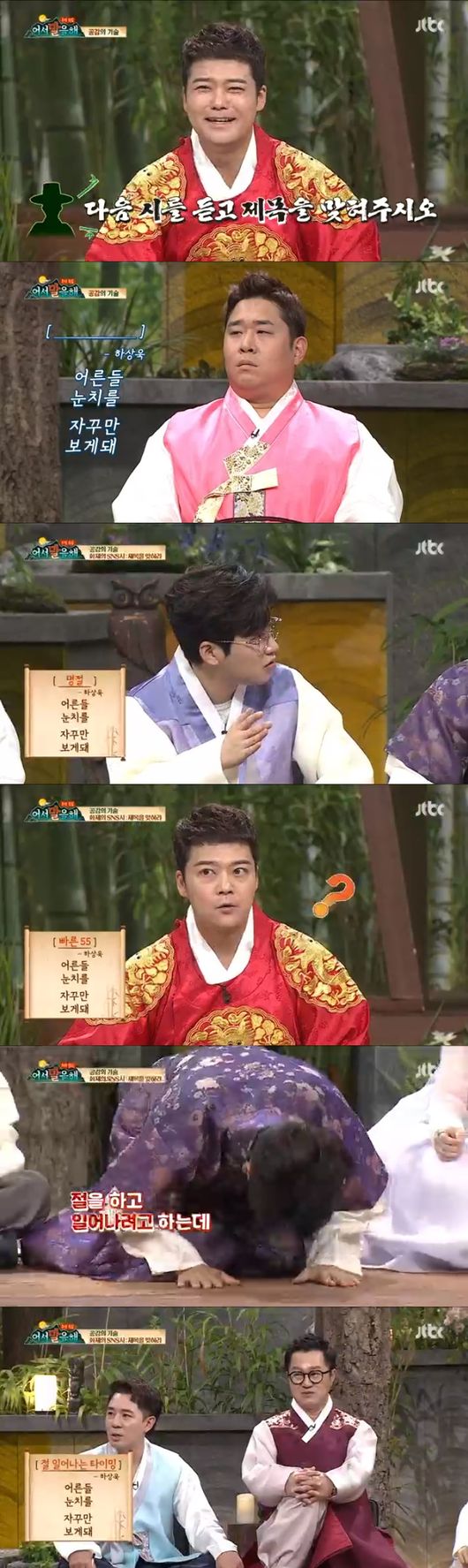 이에 딘딘은 '명절'을 붐은 '빠른 55. 55년생이 예민하다'고 말했다. 정답을 쉽게 맞추지 못하자 전현무는 구체적인 상황이다라며 힌트를 줬다. 이에 정상훈은 절 할 때 눈치를 보게 되지 않냐. 라고 말했다. 이에 전현무는 '절 일어나는 타이밍' 정답이라고 말했다