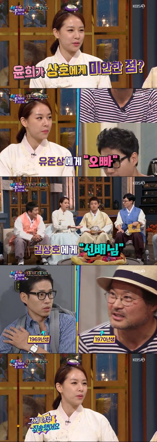 조윤희는 "그동안 유준상 선배님께는 오빠라고 부르고 김상호 선배님께는 선배님이라고 불렀다"며 "근데 알고보니 유준상 선배님이 한 살 더 많으시더라. 그걸 알고 너무 죄송했다"라고 말했다.