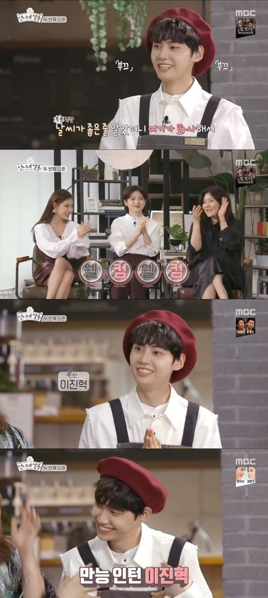 이어 뷰티 쌀롱 대표 한예슬이 등장해 "핫한 인턴을 영입해 왔다"고 말했고 이진혁은 자신을 소개하며 "정직원이 될 때까지 열심히 하겠다"고 대답했다. 이에 조세호는 “이동욱 씨에게 진혁이 잘 챙겨달라고 전화가 왔다. 정말 애정이 많더라”라며 두 사람의 친분에 놀라워했다.