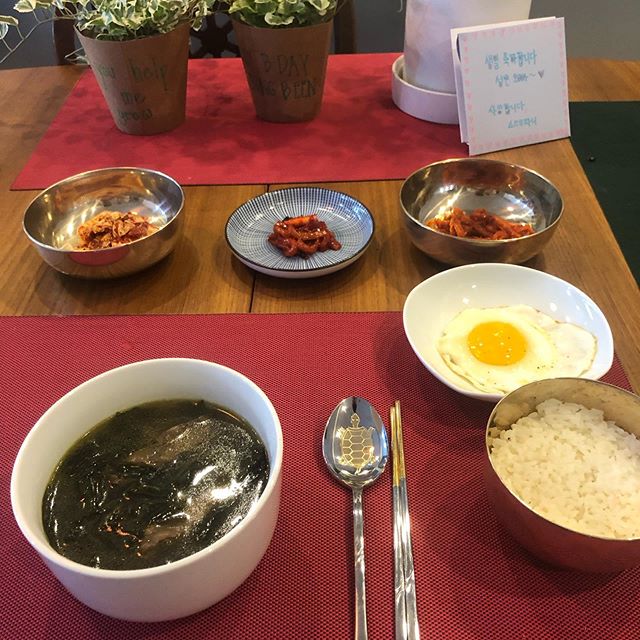 래퍼 빈지노가 연인 스테파니 미초바가 직접 차린 미역국 생일상을 공개했다.