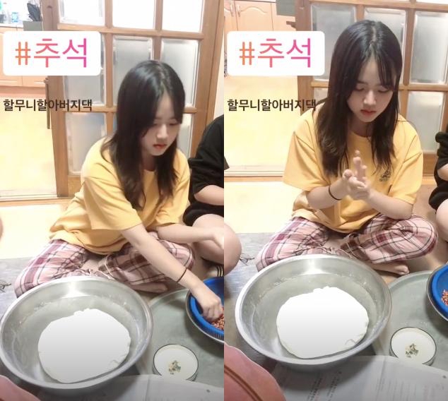 영상 속 김향기는 송편 빚기 삼매경이다. 김향기는 능숙하게 소를 넣은 반죽을 두 손으로 굴리고 있다. 집중한 미간과 앙 다문 입술이 사뭇 비장해 웃음을 자아낸다. 또 김향기는 노란색 티셔츠, 체크 패턴 잠옷 바지 등의 친근한 복장으로 눈길을 끈다.