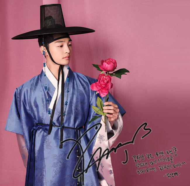 특히, 수줍음이란 꽃말을 지닌 작약 꽃을 지그시 바라보는 김민재의 깊은 눈빛과 우월한 한복 자태는 여심을 자극한다.