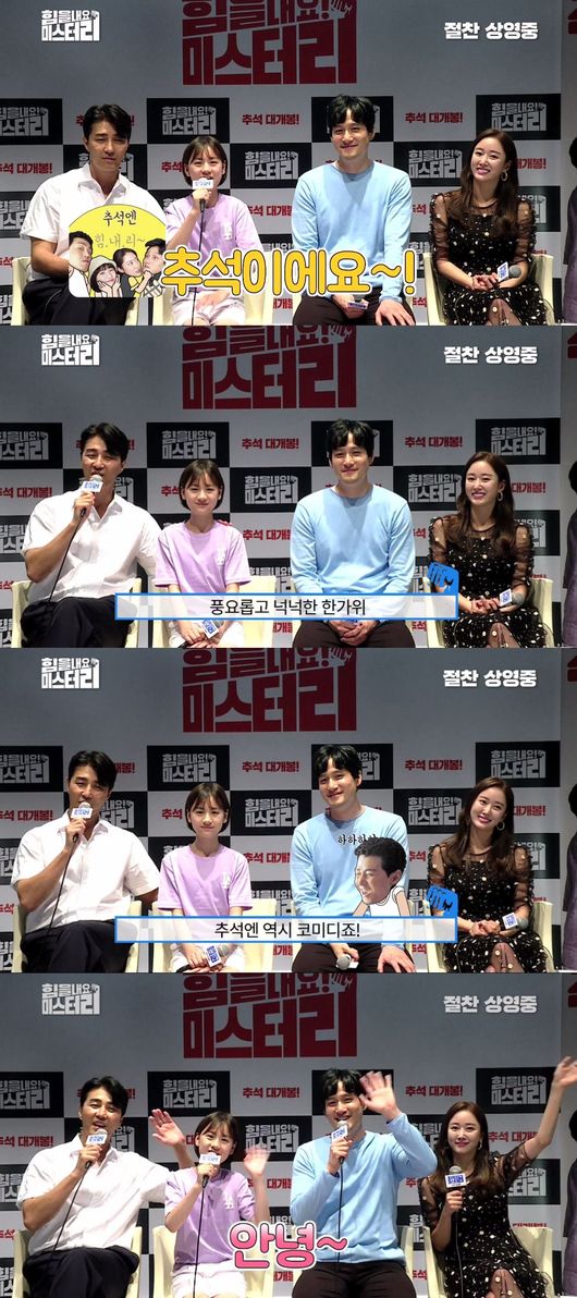 ‘힘을 내요, 미스터 리’를 통해 전매특허 코미디부터 가슴 찡한 감동까지 전할 차승원은 영화 속 명대사를 활용해 “사랑하는 가족들과 함께 100개 만큼 풍요롭고 넉넉한 한가위 보내시길 바랍니다”라며 기분 좋은 추석 인사말을 전했다. 차승원과 환상의 부녀 케미를 선보일 엄채영은 깜찍한 모습으로 “행복하고 즐거운 추석 연휴 되세요”라고 전해 보는 이를 미소 짓게 만들었다.