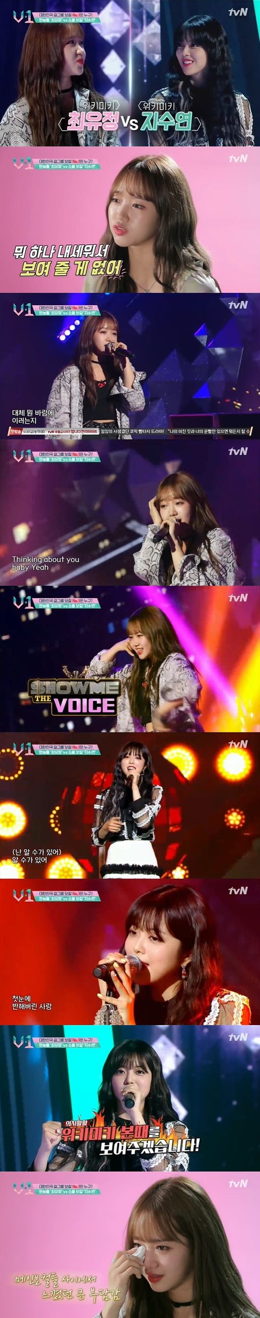두 번째 대결은 위키미키 메인 보컬 지수연과 최유정. 같은 그룹이 대결을 벌이게 됐다.