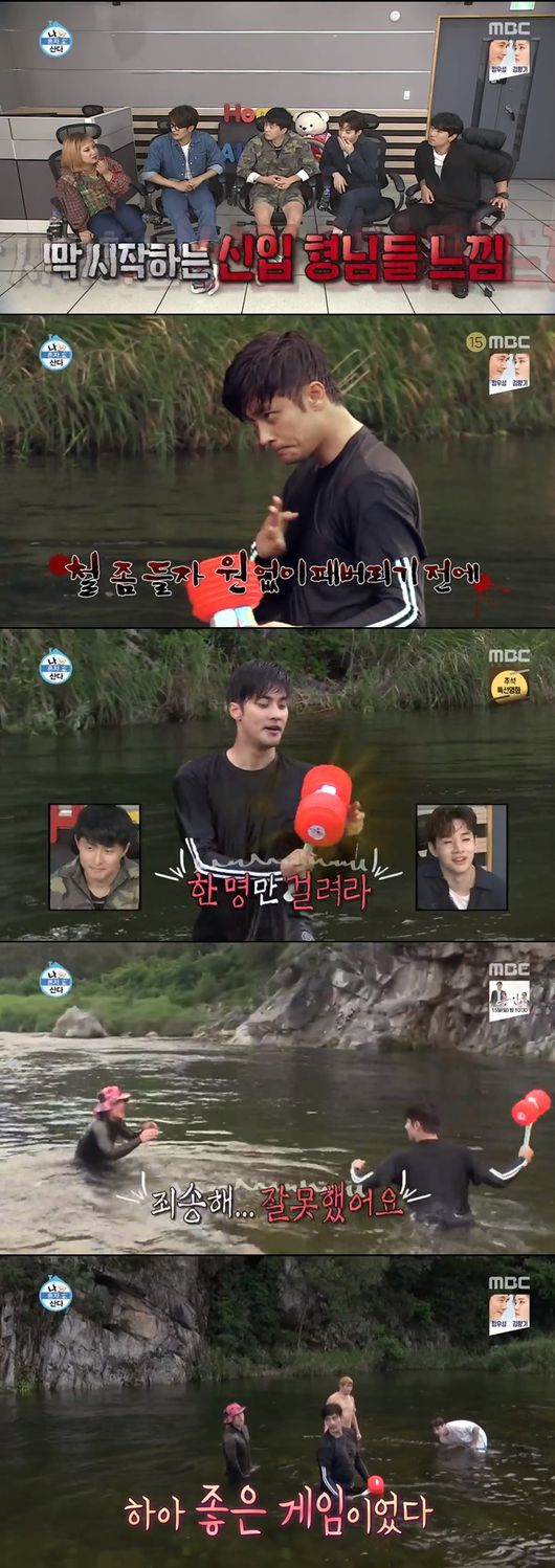 이날 물놀이로 물 두더지 게임이 진행됐다. 뿅망치를 잡은 사람을 제외한 나머지 사람들이 물 속에서 잠수를 하고 잠수를 못하다가 수면 위로 올라오면 뿅망치를 맞는 게임. 가장 먼저 헨리가 뿅망치를 잡았다.