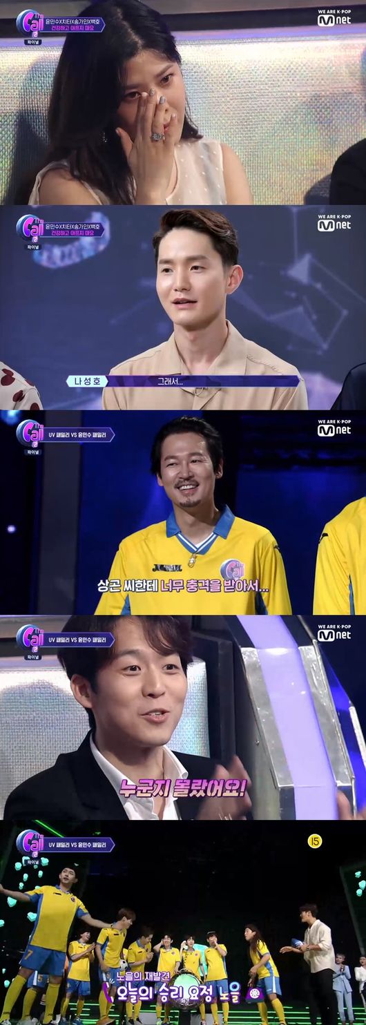 13일 방송된 Mnet '더콜'에서는 두 번째 매치로 UV패밀리와 윤민수 패밀리의 무대가 공개됐다. 이날 UV패밀리는 11명이라는 인원 수 때문에 시선을 사로 잡았다.
