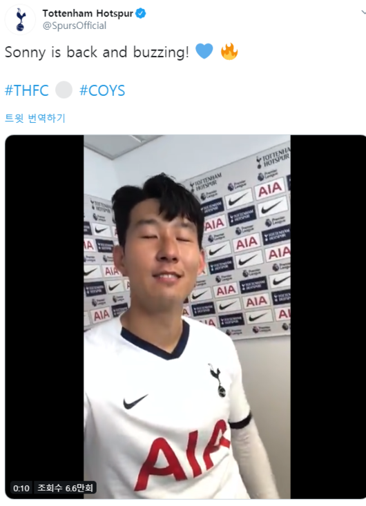 경기 후 토트넘 공식 SNS 역시 "손흥민이 크리스탈 팰리스전에 나서면 득점이다"라며 "소니가 돌아와 해냈다"라고 반겼다. /mcadoo@osen.co.kr