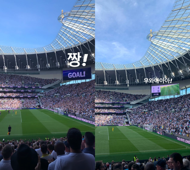 그룹 블랙핑크의 지수가 토트넘 훗스퍼와 크리스탈 팰리스 경기 직관 인증샷을 공개했다.