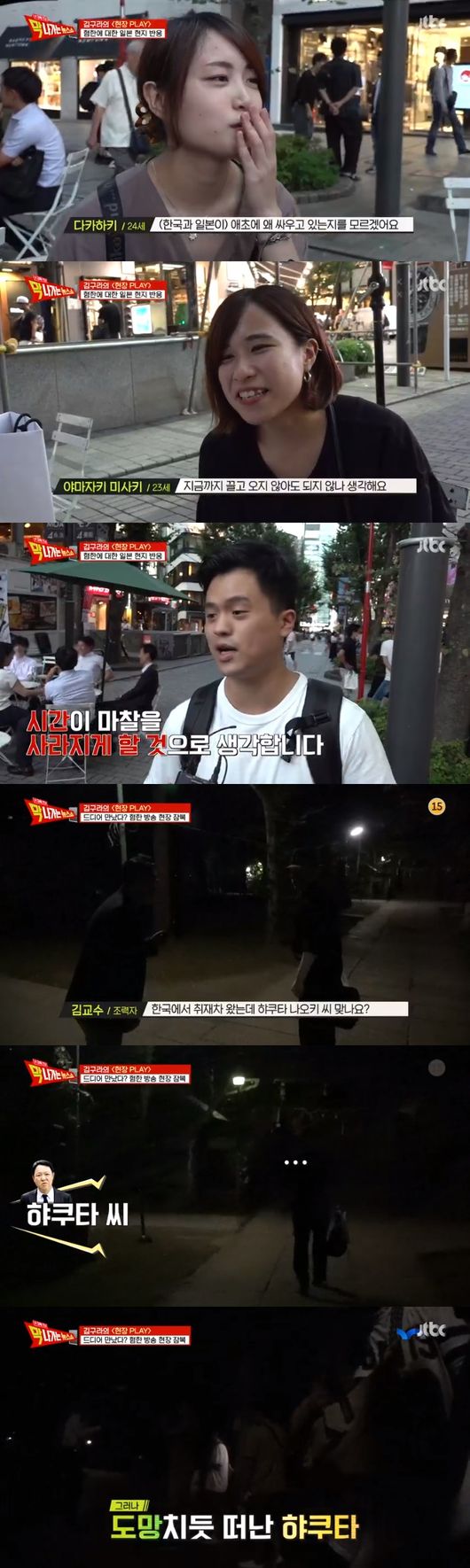 이후 두 사람은 혐한러 2인이 개인 방송을 한다는 곳에서 혐한러 2인을 기다렸다. 오랜 기다림 끝에 소설가 하쿠타 나오키를 발견했고 그에게 인터뷰를 요청했다. 하지만 하쿠타 나오키는 당황해 하며 도망치듯 발걸음 재촉했고, 방송이 끝난 후에도 모습을 끝내 보이지 않았다. /jmiyong@osen.co.kr