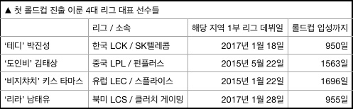 그렇기 때문에 천금같은 기회를 거머쥔 몇몇 선수들에게 롤드컵 무대는 특별하게 다가올 가능성이 높다. 이에 OSEN은 데뷔한지 오랜 기간이 흘렀지만 2019 롤드컵엔 처음으로 출격하는 LOL e스포츠 4대 리그(한국 중국 유럽 북미)의 선수들을 살펴봤다.