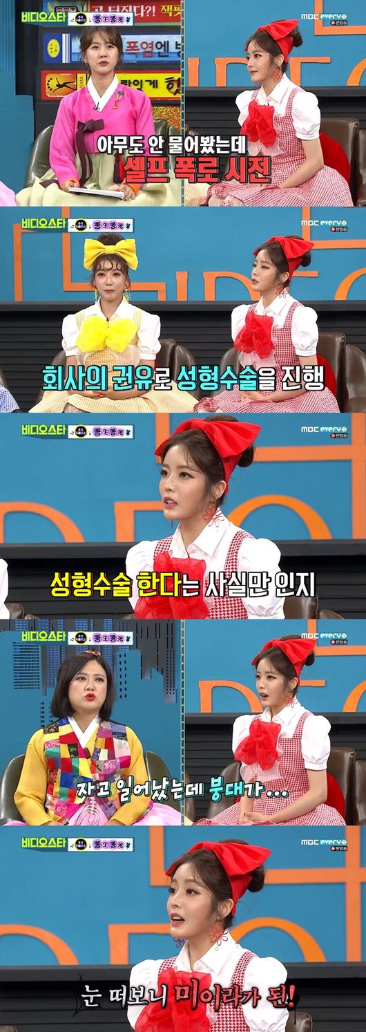 박성연은 "회사에서 성형을 하라고 해서 갔다. 그래서 자고 일어났더니 온 몸에 붕대가 감겨져 있고 성형이 돼 있더라"며 "내 의지가 아니기 때문에 견적도 모른다"라고 말했다.