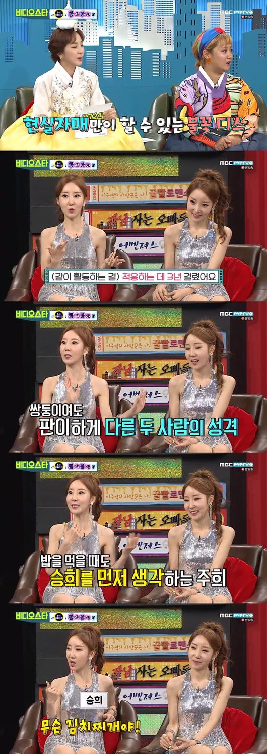 이에 승희는 "오렌지캬라멜이 처음 데뷔할 때 우리에게 CD를 가져와서 그랬다. 오렌지캬라멜의 사장님이 윙크를 보고 그룹을 만들었다고 하더라"라며 "이해한다. 비너스가 오렌지 캬라멜을 본 뜬 그룹이고 결국 우리를 본 뜬 것"이라고 말해 눈길을 끌었다.
