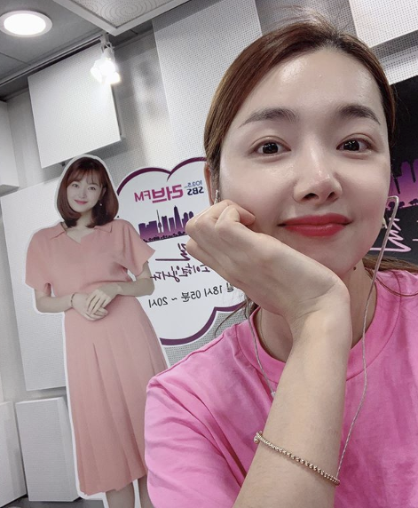 사진에서 소이현은 편안한 핑크 티셔츠를 입고 턱을 괸 채 카메라를 보고 있다. 라디오 생방송을 한 시간 앞두고 여유로운 미소를 짓고 있어 보는 이들마저 절로 흐뭇하게 만든다.