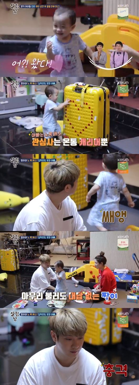 한편 이날 율희는 재율이와 최민환을 기다리며 동물카드 찾기 놀이를 했다. 재율은 율희가 말한 동물을 척척 맞혀 영재 탄생을 알렸고 최민환은 공항에서 나타났다. 최민환은 "열흘 동안 해외 공연을 갔었다. 통통이와 재율이가 보고 싶다"고 말했다.
