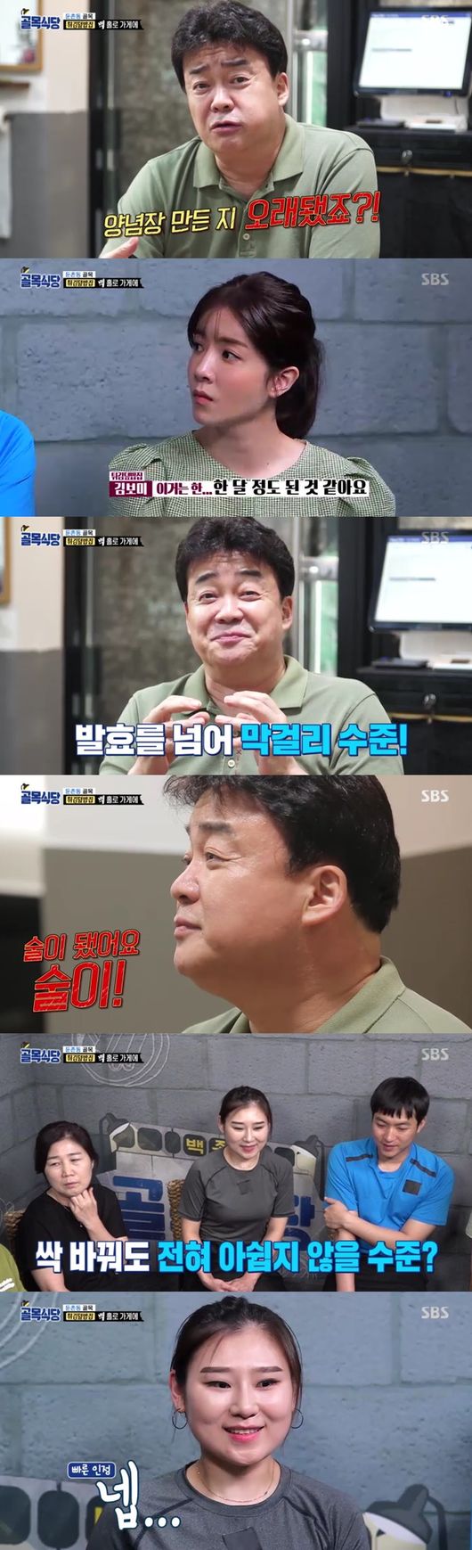 주방을 점검했다. 들어서자마자 백종원은 "혼나야 겠다"면서 플라스틱 채반을 지적했다. 펄펄 끓는 면을 플라스틱 채반에 넣으면 안 되기 때문. 주방도구는 스테인리스를 이용해야 했기때문이다.이어, 큰 통에 담긴 양념장도 포착했다. 백종원은 "양념장에서 술맛이 나, 버려라"고 또 한번 강조했다.