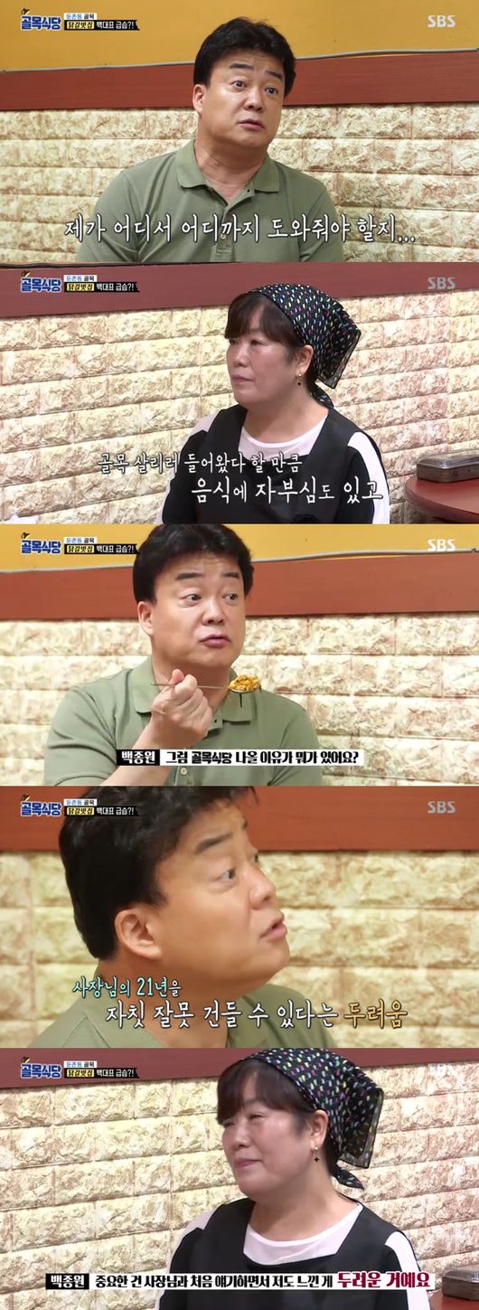 백종원은 "내가 단순히 국물 부족해서 국물만들어 오는 사람은 아니다"면서 "처음 얘기하면서 느낀건 사장이 두려워해, 나도 21년을 자칫 잘못 건들 수 있다는 두려움이 있다"면서 만족하고 있다면 고민할 필요가 있다며 시간을 줬다.