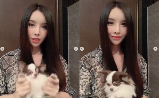 또 다른 영상에서는 반려견과 함께 카메라 앞에서 애교를 부리고 있다. 깜찍하거나 섹시한 극과 극 이미지로 팬들의 뜨거운 반응을 얻고 있다. 물오른 인형 비주얼 덕분이다.
