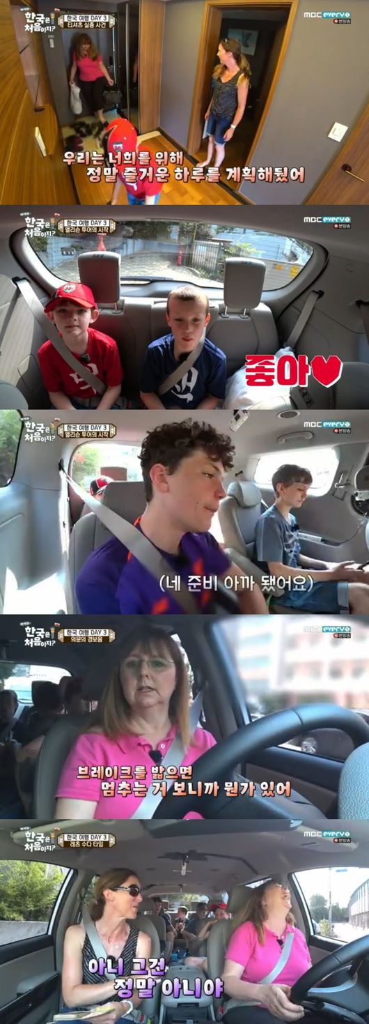 설레는 마음으로 출발, 시작부터 차에서 경보음이 울렸다. 母들이 걱정하는 사이, 아이들은 게임하느라 바빴다. 母들은 황급히 갓길에 정차, 서둘러 제작진이 차를 살펴봤다. 알고보니 문이 살짝 열려있었던 것이었다.