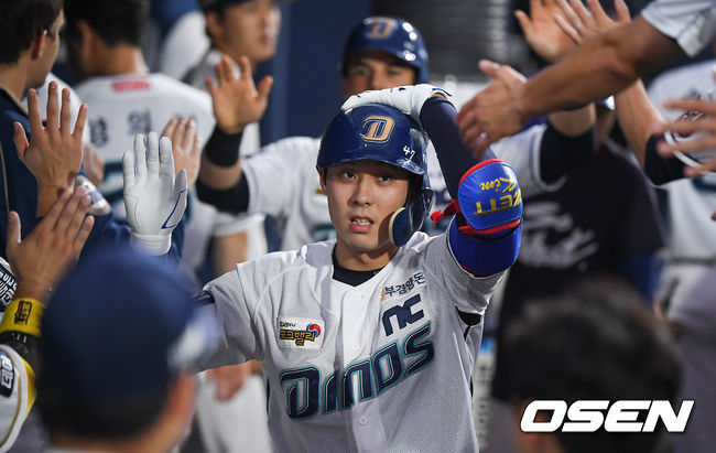 NC도 곧바로 추격에 나섰다. NC는 1회말 1사 후 이상호가 중전안타로 출루했다. 박민우의 1루수 땅볼로 2사 2루 기회를 이어갔고 양의지가 LG 선발 케이시 켈리의 148km 투심을 받아쳐 좌월 투런 아치를 그렸다. 2-3으로 추격했다.