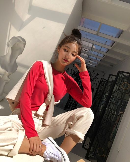 사진 속 이채은은 편안한 포즈를 취하면서도, 카메라를 의식한 듯 시선을 내리깐 모습이다. 빨간색 슬리브 티셔츠와 크림색 바지를 입은 이채은은 가디건을 묶어 세련된 코디를 완성했다.