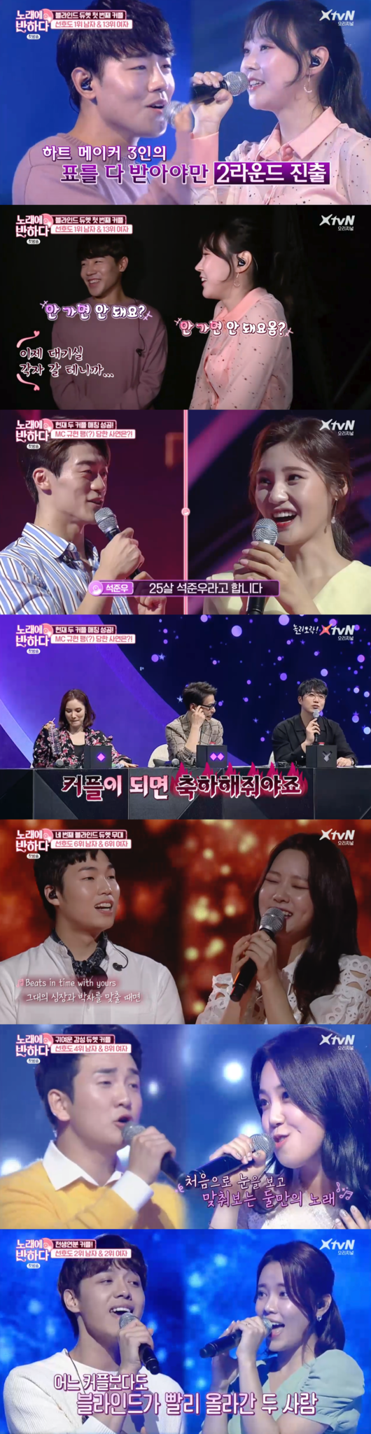 성시경, 거미, 윤상이 말한 것처럼 다소 아쉬운 가창력이더라도 서로 진심으로 교감하거나 상대에게 썸 기류를 느낀다면 무리없이 2라운드에 진출했다. 가창력보다 커플 매칭이 더 흥미로운 경연인 셈. 듀엣 무대보다 얼마나 많은 커플이 탄생할지 궁금진 시청자들이다.
