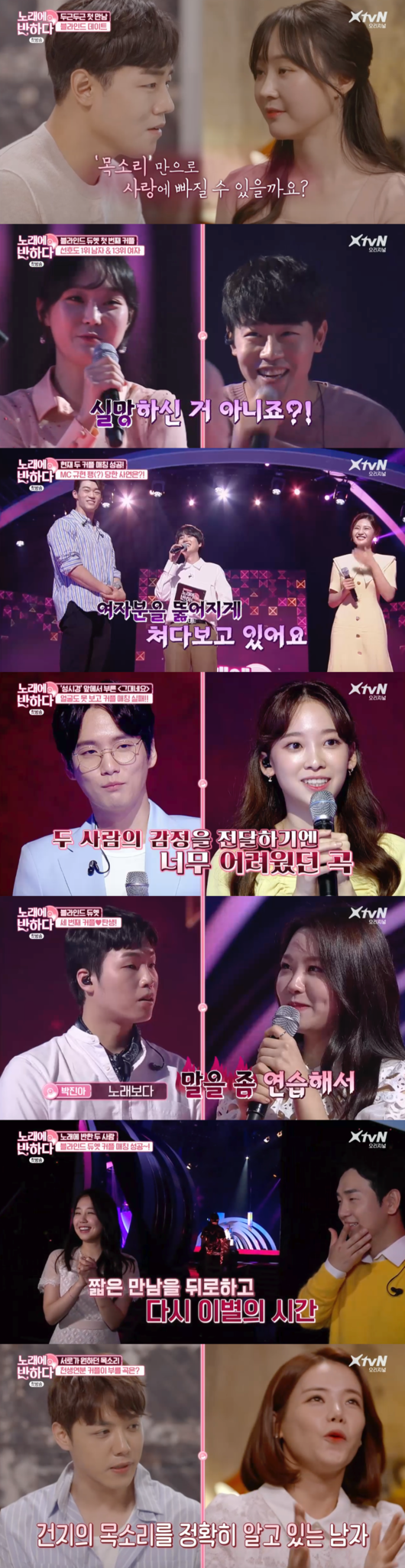 가창력보단 썸이 중요한 신 개념 듀엣 가요제가 탄생했다. XtvN 새 예능 ‘노래에 반하다’가 첫 방송부터 안방에 설렘 가득한 썸 기류를 뿜어냈다.