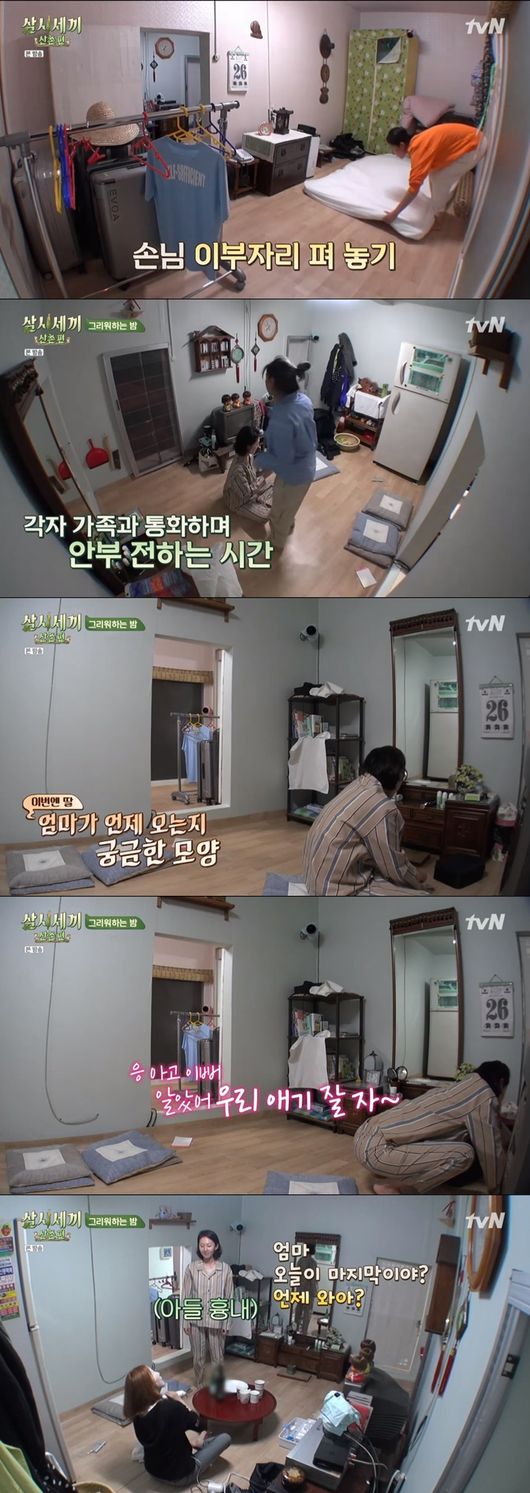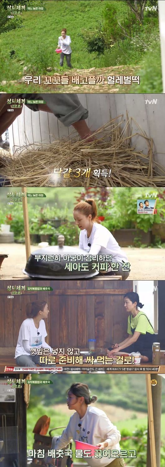 다음 날 아침, 세끼 멤버들은 10시가 넘도록 늦잠을 잤다. 염정아는 시간을 확인하고 "10시가 넘었다"며 다시 자리에 누워 웃음을 자아냈다. 윤세아는 눈을 뜨자마자 "우리 오늘 뭐 해먹냐"고 물었다. 염정아는 "김치볶음밥이다"라며 "애들이 엄마 언제 오냐고 궁금해하겠다"라고 말했다.