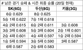 갈수록 혼전이다. 1~3위가 1.5경기 차이로 밀착됐다. 시즌 막판 정규시즌 우승팀은 안개 정국으로 들어가고 있다. 구경하는 이는 재미있게 됐다.