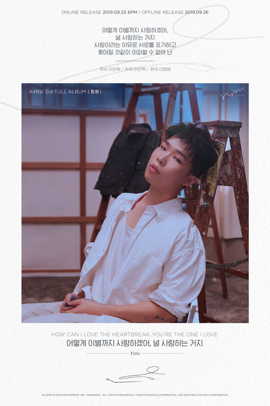 YG엔터테인먼트는 오늘(21일) 오전 10시 공식 블로그에 '어떻게 이별까지 사랑하겠어, 널 사랑하는 거지(How can I love the heartbreak, you`re the one I love)' 일부 가사가 담긴 찬혁의 리릭 포스터를 게재했다.