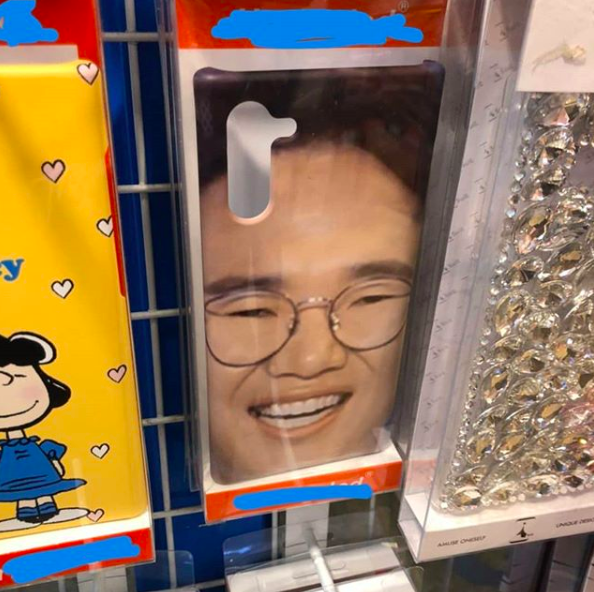 사진 속에는 장성규의 얼굴이 담긴 폰케이스가 걸려 있는 모습. 해당 사진은 장성규의 MBC 출입증 속 사진과 동일하다.