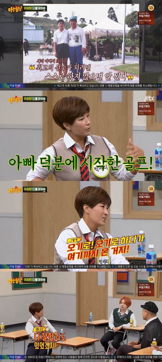 징크스가 있냐는 질문에는 "그런 거 없다. 그런 거에 연연하기 싫어서 만들지 않았다"고 대답했고, 골프를 하게 된 계기에 대해 묻자 박세리는 "좋아서한 게 아니다. 아버지가 한번 해보라고 해서 해 본 거다. 근데 아버지가 무섭다. 말씀하는 게 맞는 것보다 더 아프다. 못하겠으면 그만 두라고 하시더라"고 말했다.