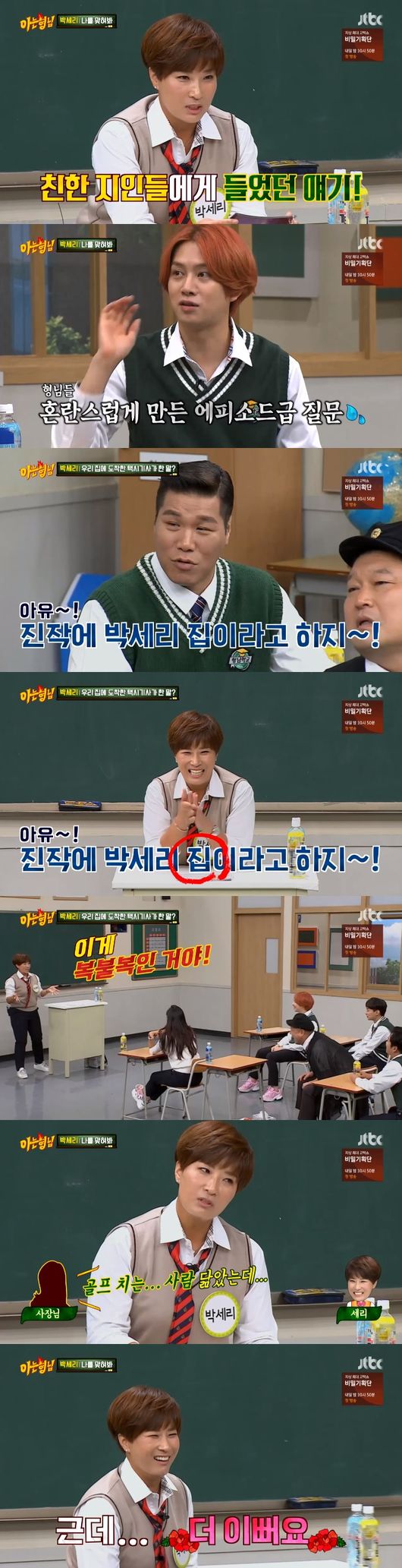 서장훈은 "진작에 박세리 집이라고 말하지"라고 말해 정답을 맞혔다. 이에 박세리는 지인이 "제 집이 노출 될까봐 골목길에서 오른쪽으로.. 그 다음 왼쪽이라고 했다더라. 도착해서 진작 말하지라고 했다더라"고 전했다.