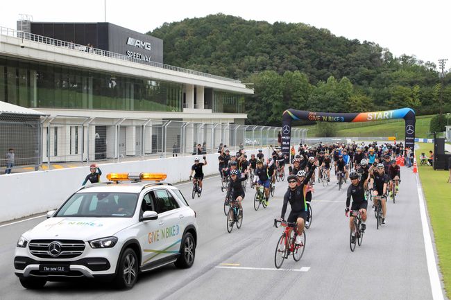 메르세데스-벤츠 코리아㈜(대표이사 사장 디미트리스 실라키스)가 21일 경기도 용인시 ‘AMG 스피드웨이(Speedway)’에서 제2회 메르세데스-벤츠 ‘기브앤 바이크(GIVE ’N BIKE)’ 기부 자전거 대회를 열었다. 태풍 타파의 영향이 미치지 않은 틈을 타 1,200여 참가자들이 에버랜드 AMG 스피드웨이를 자전거로 내달렸다.