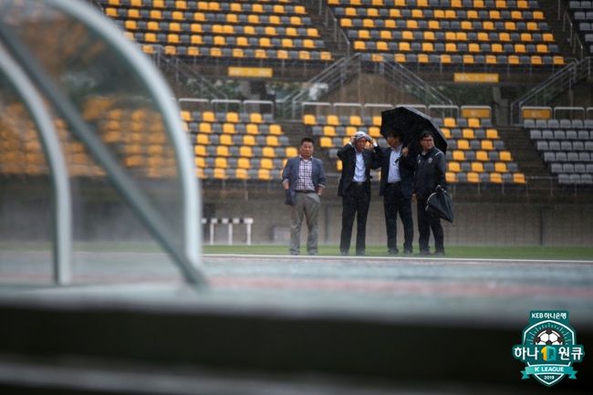 이미 울산-강원전이 취소된 것과 함께 경남과 전북의 경기도 취소됐다. 비바람이 몰아치는 상황 속에서 선수들과 경기장을 찾은 팬들의 안전을 위해서였다. 비가 워낙 많이 내려 그라운드와 배수 문제가 원활이 이뤄지지 않았다.