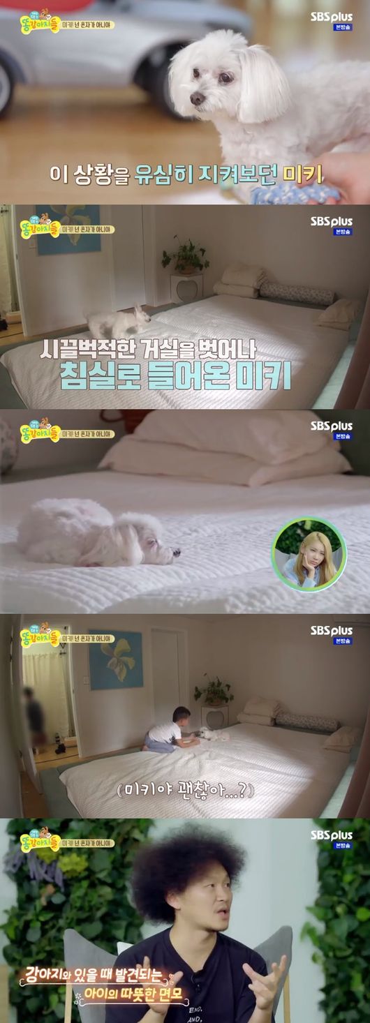미키는 새로운 강아지를 보며 반겼지만 이내 거리를 뒀고, 새끼 강아지는 집 구경을 하고 사료를 먹으며 새로운 환경에 적응했다. 이어 애교를 부리며 양동근 부부에게 친근감을 표현했다. 이 모습을 본 미키는 새끼 강아지를 졸졸 따라다녔다가 이내 장난감을 가지고 따로 놀았다.