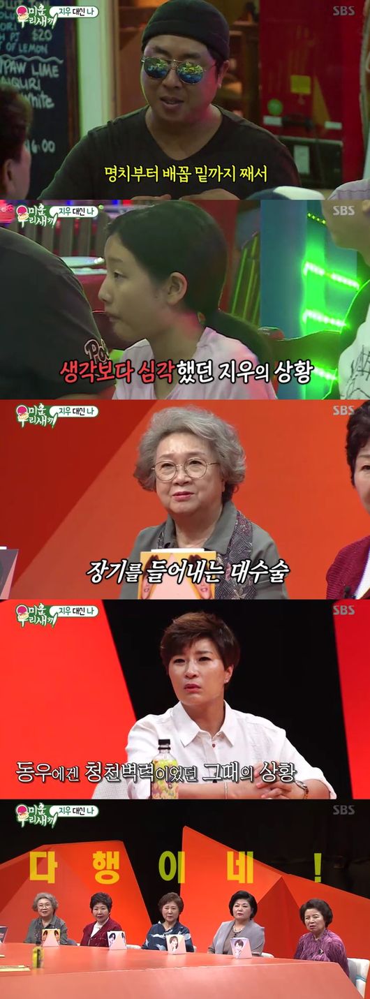 이동우는 딸 지우의 어린시절을 회상했다. 그러면서 "병원에서 선천성 거대 결장증을 얘기해더라, 장의 일부분에서 변이 막혀 내려가지 못하는 병"이라면서 "장기를 드러내야하는 수술, 그냥 갓난아기인데, 청천벽력이었다"고 했다. 이동우는 "나와 아내도 몸이 아픈데 아이까지 무슨 일이었는지, 아내가 지푸라기라도 잡는 심정으로 유산군 약을 사러 갔다"며 입을 열었다.