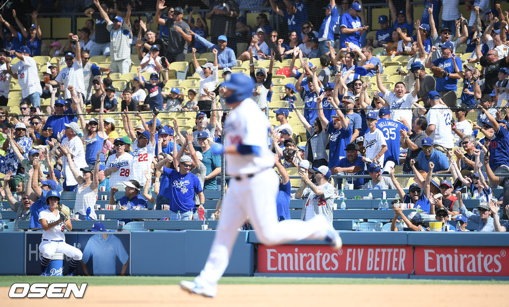 타석에서도 류현진은 5회 안토니오 센자텔라의 94.1마일 포심 패스트볼을 받아쳐 중월 솔로포를 터뜨렸다. 메이저리그 데뷔 7년, 255경기 만에 첫 홈런 손맛을 보며 다저스타디움을 열광이 도가니에 빠뜨렸다. / soul1014@osen.co.kr