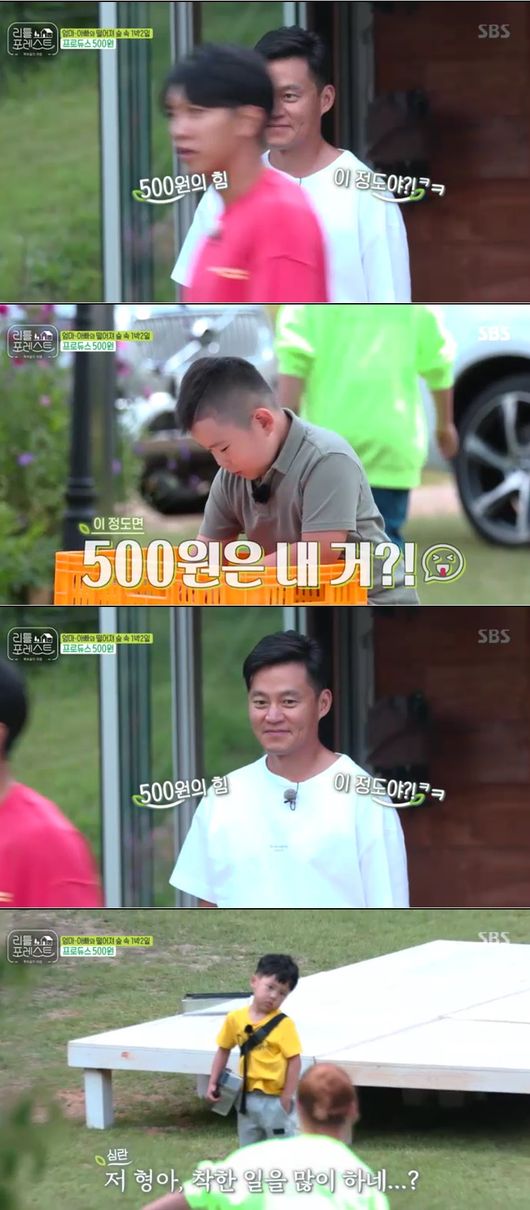 다시 숙소에 도착했고, 직접 딴 사과를 옮겼다. 아이들은 착한 일 5백원을 모으기 위해 사과 옮기기에 직접 동참했다. 특히 이한이가 칭찬세례를 받을 정도로 활약했다. 이에 정한이도 자극을 받은 듯 배틀을 시작해 웃음을 안겼다. 아이들을 움직이는 5백원의 힘이었다.