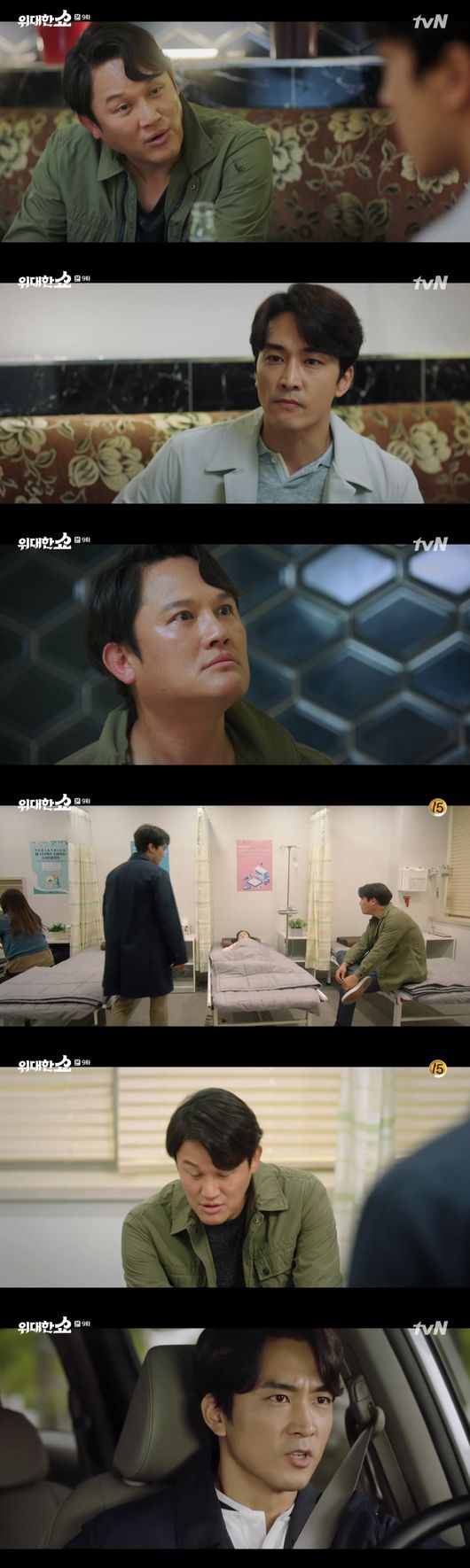 이에 위대한은 한동남의 뒷모습을 바라보며 "아무리 내가 노력해도 친아빠랑은 다르지 않냐. 아이들과 기다리겠다"고 말했다. 이어 위대한은 자신은 위험한 선택을 했다고 혼잣말을 했다.
