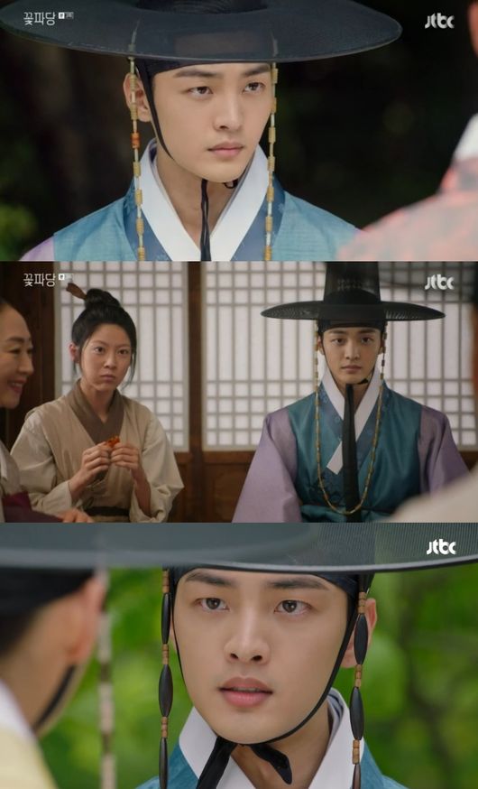 23일 오후 9시 30분 방송된 JTBC 월화드라마 '조선혼담소공작소 꽃파당'에서는 과거 시험에서 장원 급제한 선비 이형규(지일주)의 혼담을 맡게 된 꽃파당 3인방 마훈(김민재), 고영수(박지훈), 도준(변우석)과 개똥(공승연)의 모습이 그려졌다.