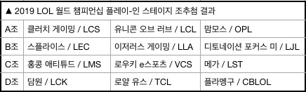 롤드컵 그룹 스테이지의 조는 ‘같은 지역의 팀은 대결하지 않는다’는 규칙으로 배정된다. A, C조에 유럽, 한국팀이 몰리면서 담원과 스플라이스는 B, D조의 자리를 채울 예정이다. 그렇다면 클러치 게이밍은 A, C조에 가야 하는데, A조에 북미의 2번풀 클라우드 나인이 들어가면서 클러치 게이밍은 C조의 남은 한 자리에 출전해야 하는 기구한 운명을 맞이하게 됐다.