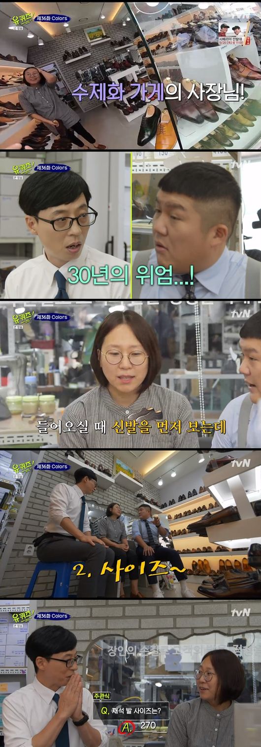 24일에 방송된 tvN '유 퀴즈 온 더 블럭'에서는 유재석과 조세호가 성수동 구두거리를 걷다가 수제화 가게를 운영하고 있는 사장님을 만났다.