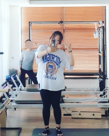 공개된 사진 속 하재숙은 필라테스 학원에서 인증샷을 남기고 있다. 박스 티셔츠에 레깅스를 착용한 하재숙은 전문 필라테스인 못지않은 포스를 풍기는 중이다.